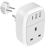 2Iroussa20% OffIroussa UK to European Adapter Plug, EU Schuko Travel Adaptor with 3 USB Ports, Euro Europe Grounded Charger for Germany France Spain Turkey Russia Iceland Greece Poland Portugal Austria (Type E/F)