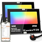3Lighting master20% OffLighting master LED Floodlight 30W 3000LM, Smart RGB Flood Lights Outdoor with APP Control, Colour Changing + Warm White, Timing - Scene - Garden Lighting, IP66, UK Plug(2 Packs