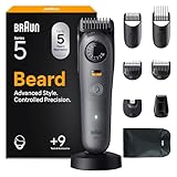 Braun Beard Trimmer Series 5, +9 Styling Tools, Ultra Sharp Blade, 120 Min Runtime, 40 Lengths, Waterproof, PrecisionWheel & Lock, BT5565, Grey
