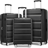 Karlhome Set of 3 Suitcase Set, Luggage Sets with 4 Rolling Spinner Wheels Combination Lock, Lightweight Hardside Carry On or Check in Trolley Travel Case, Black ABS Hard Shell