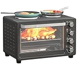 1NETTANETTA 35L Electric Mini Oven with Double Hotplate, Multiple Cooking Functions & Grill, Adjustable Temperature Control, 120 Minute Timer, Accessories Included