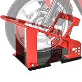 - FITMENT: This motorcycle wheel chock is suitable for motorcycle tires with a width of 8-15.5cm. The fixed part of the wheel can be turned up, 4 gears front and back, 3 gears up and down, a total of 12 levels are adjustable, each level is 1cm; so this motorcycle stand is suitable for most motorcycles.